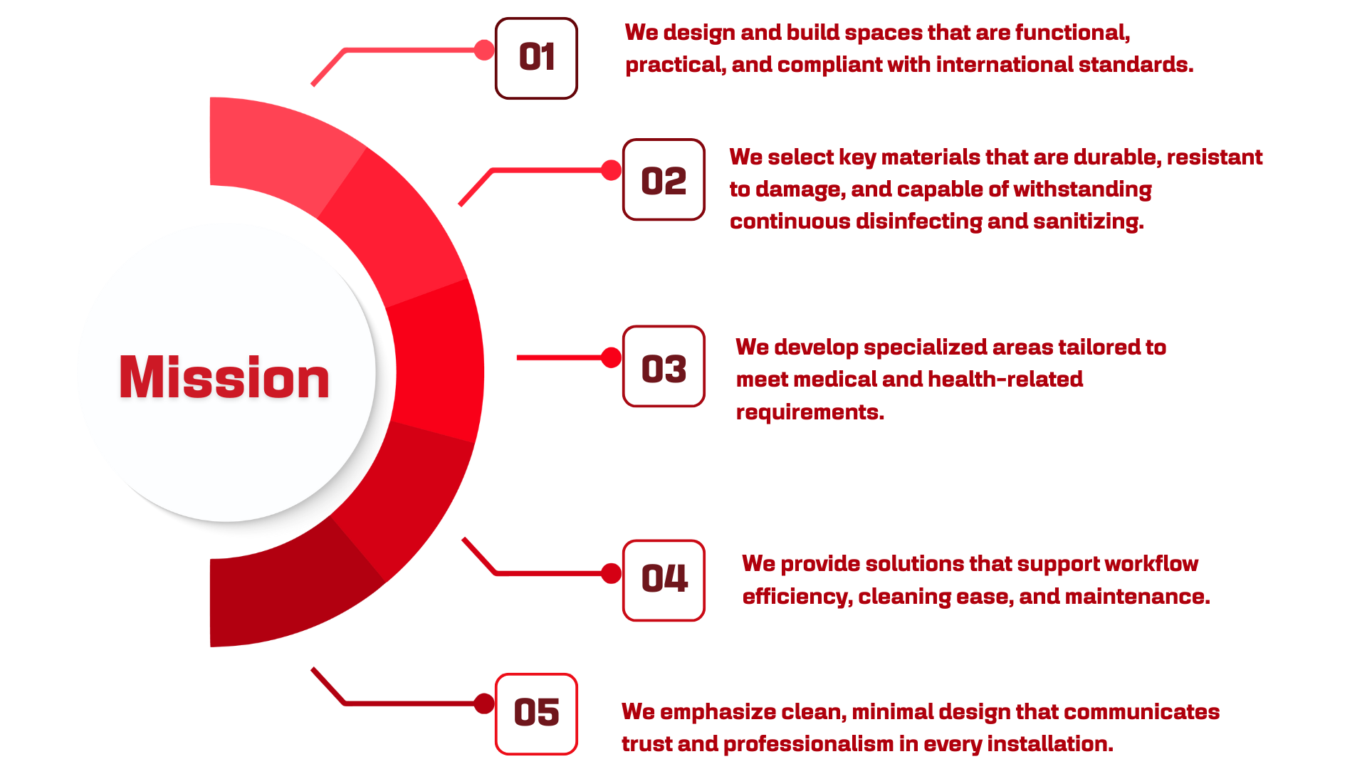 We are committed to setting new standards in the design and construction of healthcare spaces. Our priorities are safety, hygiene, and user understanding—core values we integrate into every project.